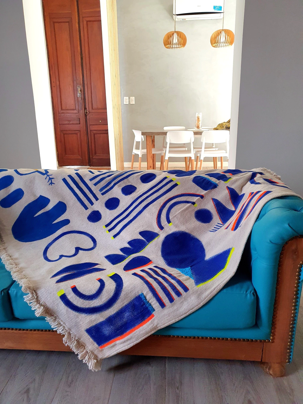 Es una manta con volumen y peso que queda increible como tapiz tambièn.